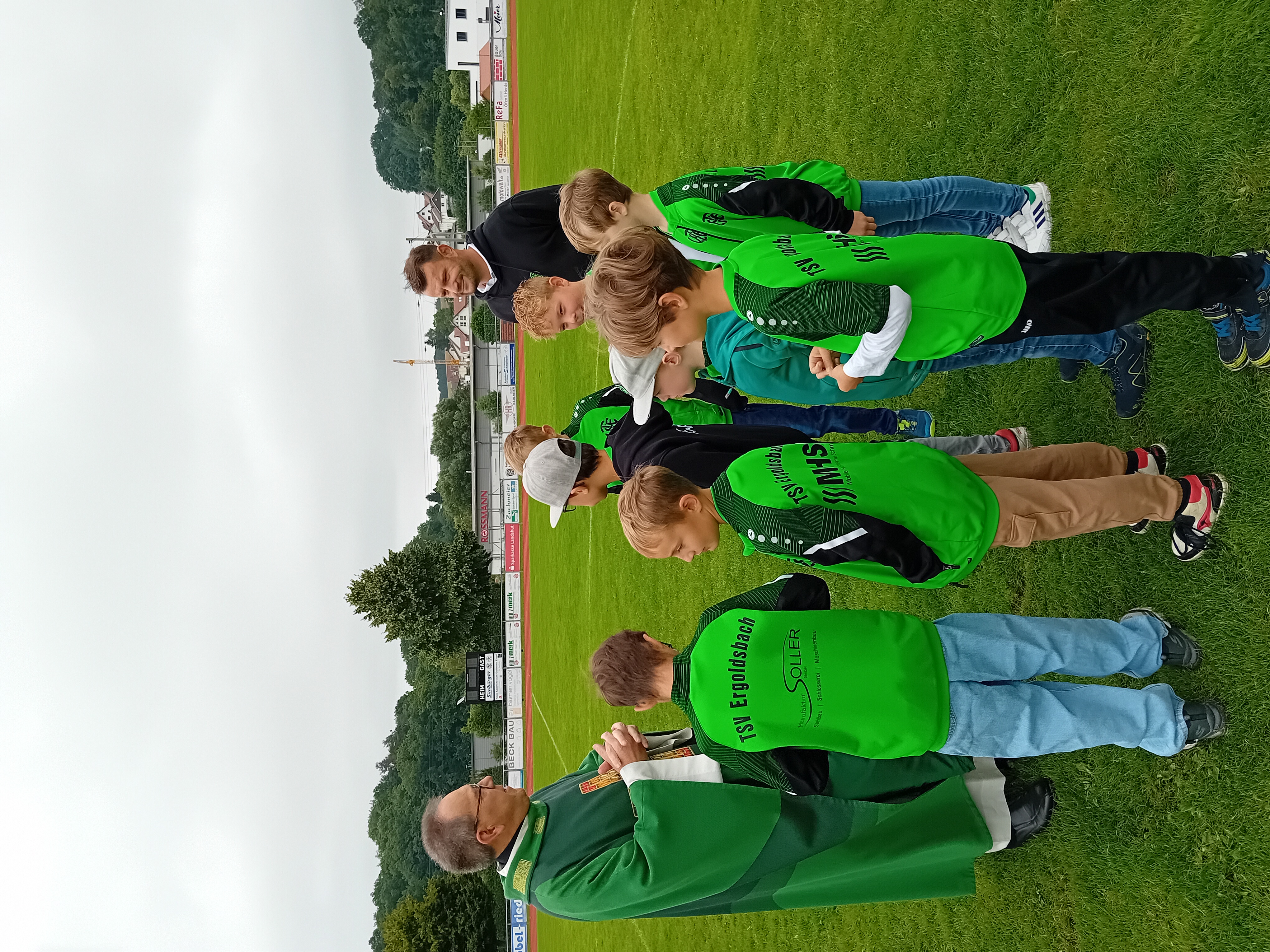 Der Sonntag begann mit dem traditionellen Festgottesdienst am Sportplatz. Die Schülerspieler in ihren Trikots wurden von Pfarrer Stefan Anzinger auch sogleich in die Predigt mit eingezogen, in der er die Kirche mit den Mannschaftsteilen einer Fußballelf verglich. Pfarrer Anzinger bewies seien guten Draht nach oben, denn nach dem Schlußsegen zeigte sich alsbald auch die Sonne.