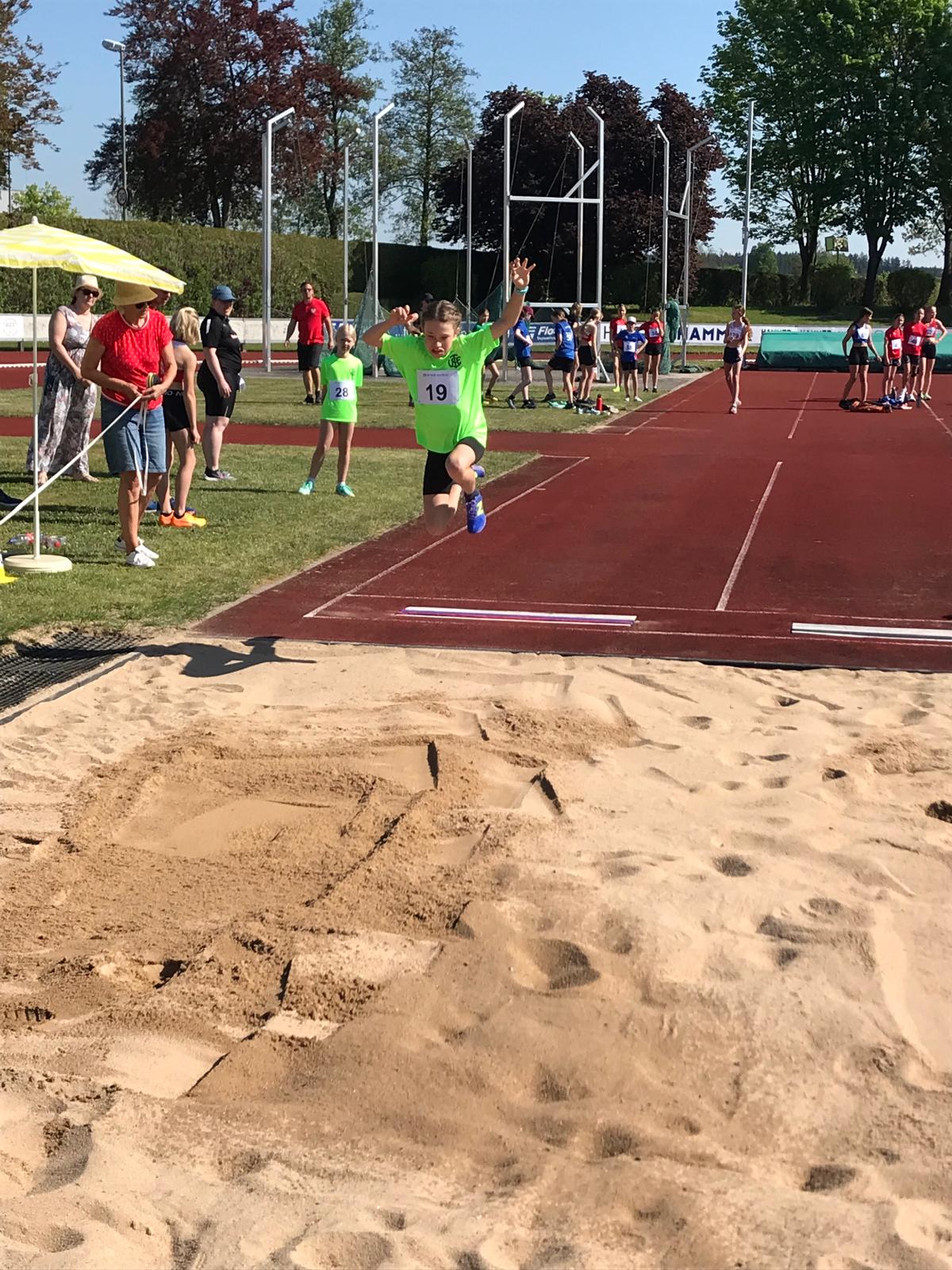 Benedikt Mayer (M13) war mit gleich fünf Siegen der überragende Ergoldsbacher Starter: Er gewann den 75m-Lauf (10,99 s), die 60 m Hürden (10,64 s), den Hochsprung (1,42 m), den Weitsprung (4,28 m) und den Speerwurf mit starken 36,72 m.