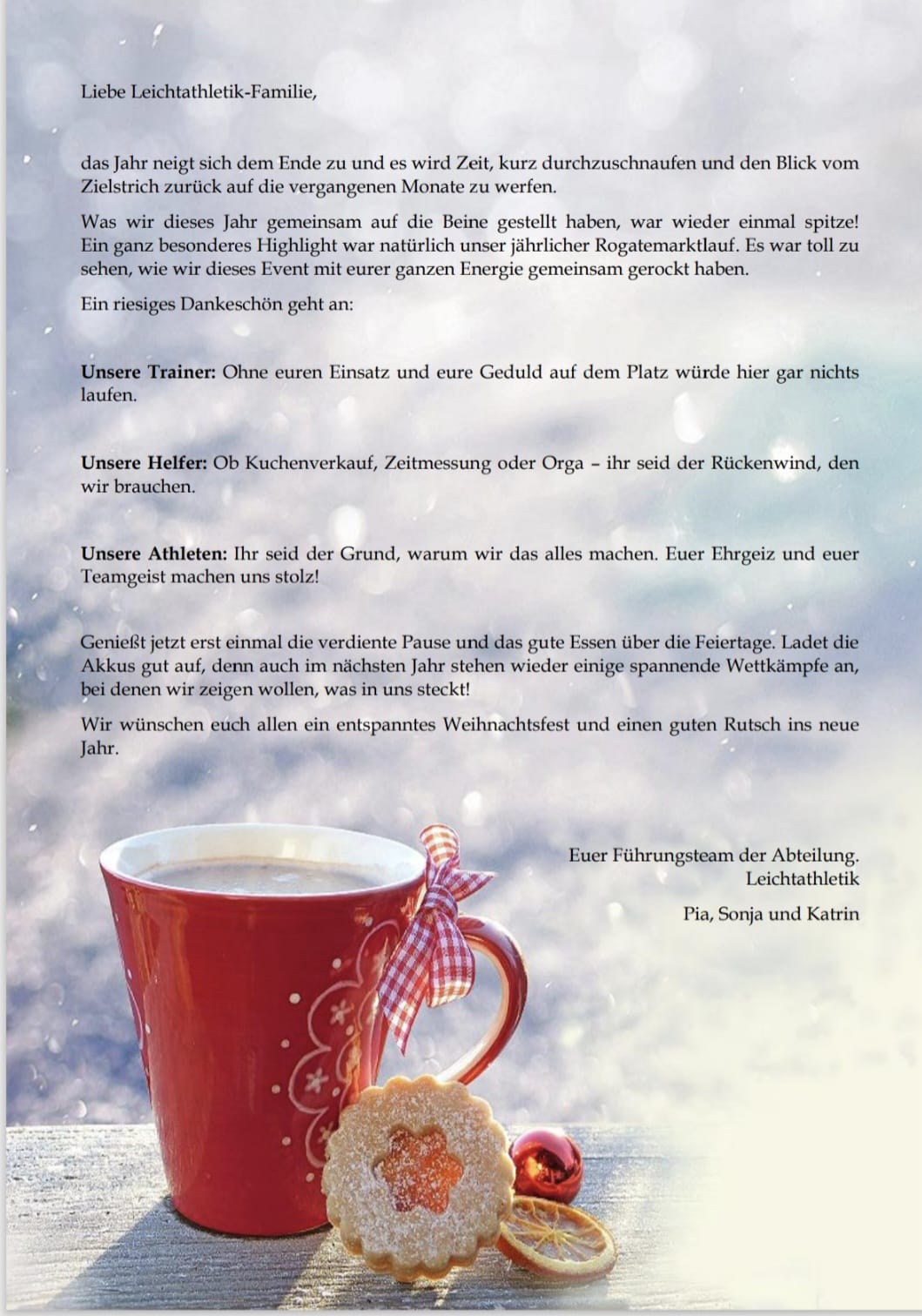 Bei weihnachtlichem Ambiente und gemütlicher Atmosphäre war es eine wunderbare, gemeinschaftliche Feier und ein sehr schöner Ausklang des Fußballjahres.