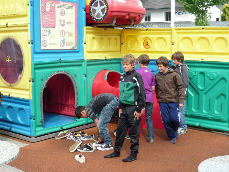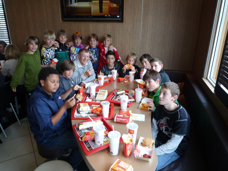 Trotz teilweise deftiger Niederlagen und der misslichen Personalsituation zeigen die D-Junioren jeden Samstag Einsatz und geben ihr Bestes. Die Betreuer Armin Buchner und Paul Stoller luden die Jungs daher kurzerhand nach dem Spiel beim ATSV Kelheim in die dortige McDonalds-Filiale ein.