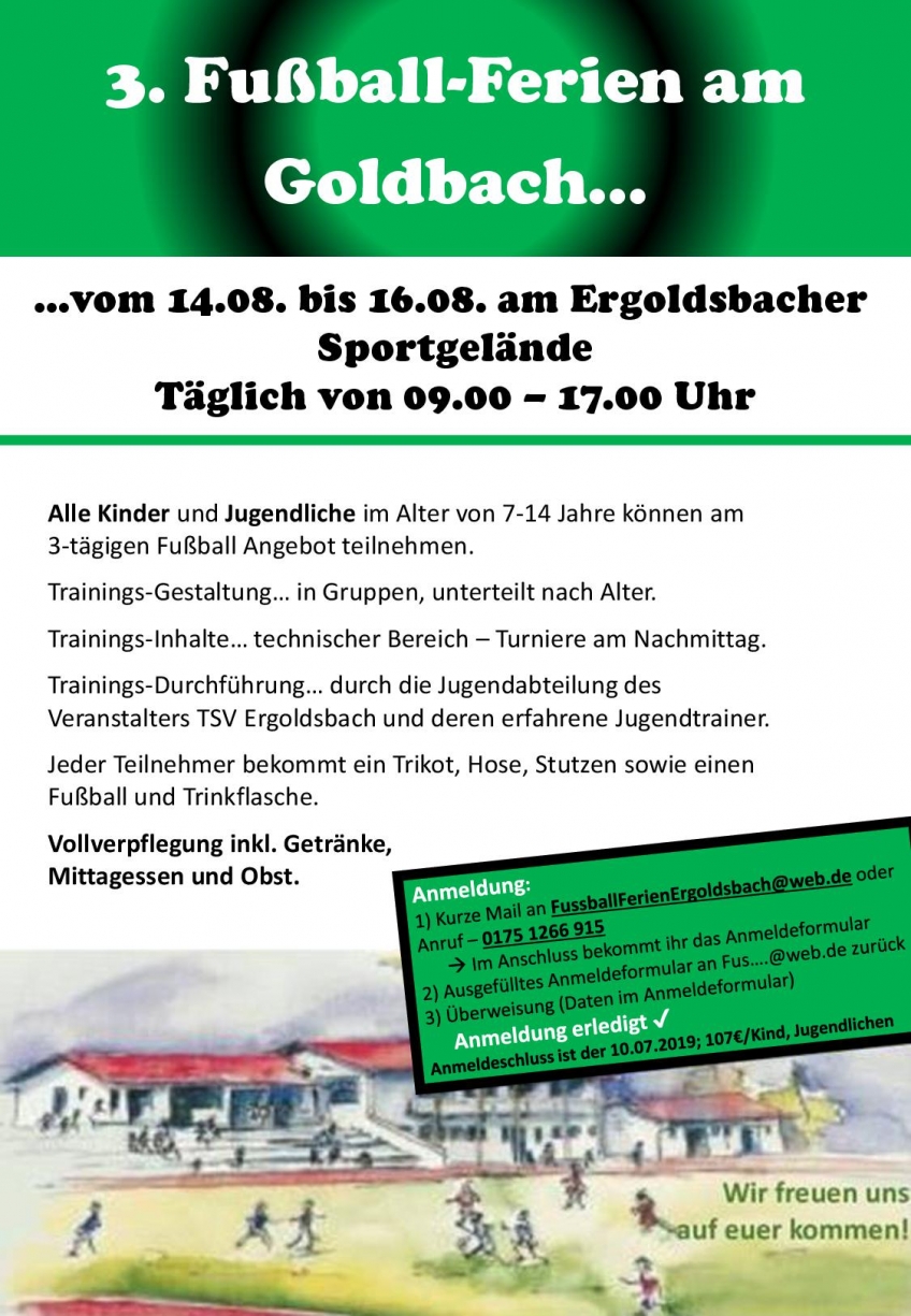 Fußball Ferien am Goldbach vom 14. bis 16. August 2019