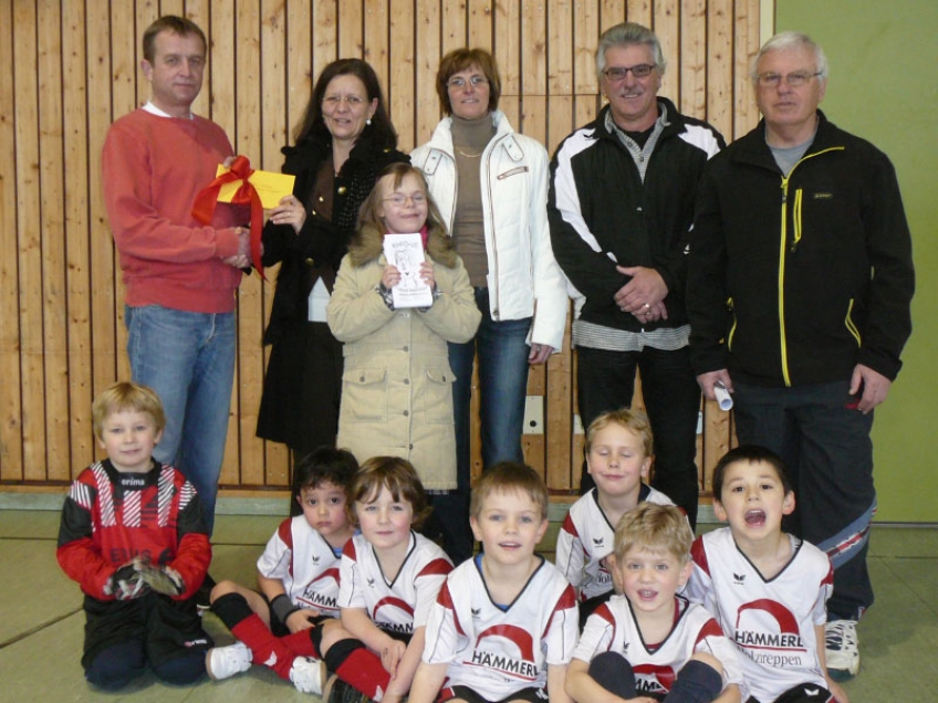 Ergoldsbach: Mit einer tollen Überraschung warteten Ursula Zach und Dagmar Roider vom Kinderförderverein Ergoldsbach anlässlich des Bambini-Hallenturniers am vergangenen Sonntag auf. Sie überreichten Reiner Kappl eine Spende in Höhe von 1.000 Euro. Ursula Zach begründete die großzügige Spende mit dem großen Engagement der Jugendabteilung des TSV. Die Spende trage dazu bei, dass der TSV auch weiterhin das umfangreiche Angebot für Ergoldsbacher Kinder und Jugendliche aufrecht erhalten könne. Reiner Kappl zeigte sich hoch erfreut über diese Zuwendung und führte aus, dass man derzeit mit einem Stab von zwanzig ehrenamtlichen Trainern zehn Mannschaften mit rund 180 jungen Fußballern betreue. Alleine durch den Trainingsbetrieb würden durch die Jugendabteilung jede Woche etwa zwanzig Stunden Jugendarbeit geleistet. Dazu kämen der Spielbetrieb sowie Turnierteilnahmen und Freundschaftsspiele. Diese umfangreiche Betreuung und Ausbildung könne nur durch überdurchschnittlichen Einsatz der Trainer und Betreuer gewährleistet werden, verursache aber trotzdem hohe Kosten. Umso mehr freue man sich über die Unterstützung des Kinderfördervereins, durch die man nun in der Lage ist, vier dringend benötigte Kleinfeldtore zu finanzieren.