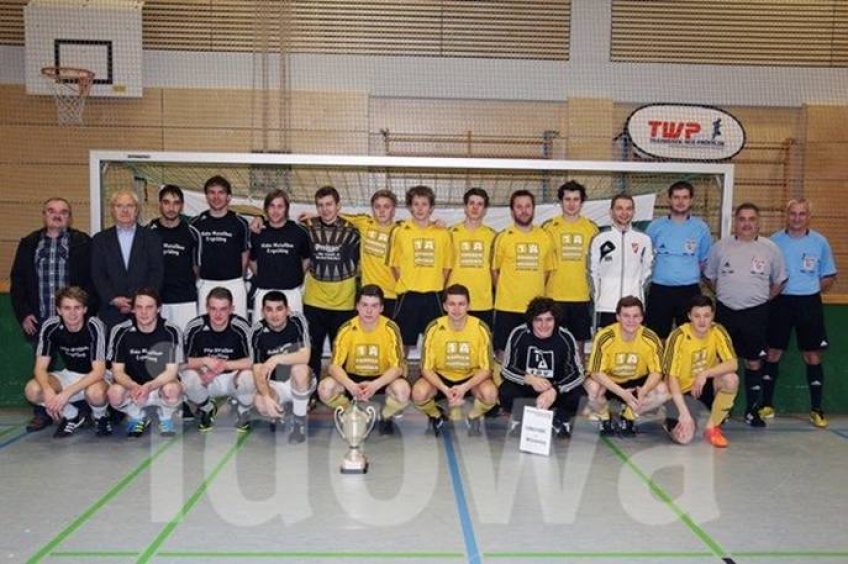 Das Finale zwischen dem TV Schierling und dem Vorjahressieger TSV Ergoldsbach war so richtig was für die Zuschauer, Spannung pur bis zur Schlusssirene. Großen Anteil daran hatte der Schierlinger Hannes Wagner, er durchlebte in dieser Partie alle Höhen und Tiefen eines Hallenfußballers. Nach zwei Minuten und fünf Sekunden war es Tobias Brunner, der Ergoldsbach in Führung brachte. Es ergaben sich Chancen auf beiden Seiten und wieder sollte ein Abwehrfehler die Wende einleiten. Nach fünfeinhalb Minuten nutzte Hannes Wagner einen solchen zum viel umjubelten Ausgleichstreffer und zwei Minuten später erzielte er mit einem fulminanten Weitschuss die 2:1-Führung für Schierling. Die ersten Minuten nach der Pause sahen eher wie Sicherheitsfußball aus und es ergaben sich keine zwingenden Chancen. Eineinhalb Minuten vor der Schlusssirene wurde es aber richtig turbulent, als der Unparteiische den Schierlinger Hannes Wagner für zwei Minuten vom Feld schickte. Der TSV Ergoldsbach belagerte von da an seinen Gegner mit einem Kreisspiel wie beim Handball, doch kam man nur zu einer echten Chance, die die Schierlinger mit vereinten Kräften 15 Sekunden vor Schluss vereitelten und so den knappen Sieg über die Zeit retteten.