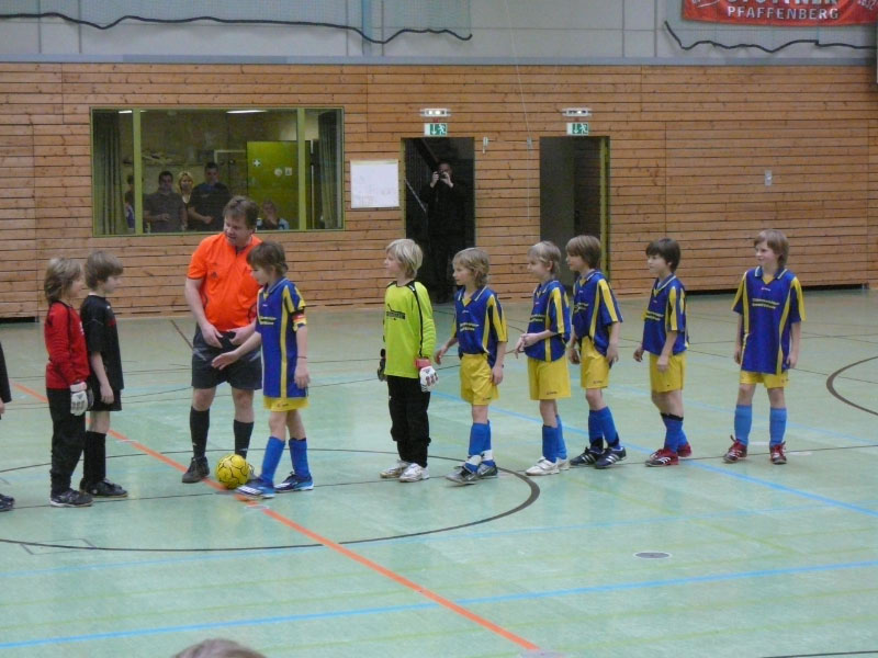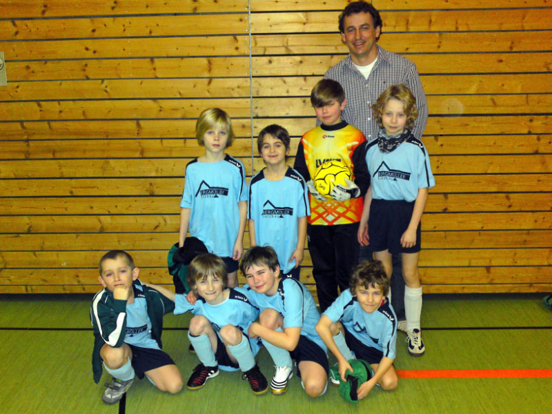 Noch einen Tick besser lief es für die E-Junioren. Obwohl man nicht in Bestbesetzung antreten konnte, steigerte sich der TSV von Spiel zu Spiel und marschierte ungeschlagen bis ins Finale. Dabei begeisterten die jungen Kicker ihre Fans mit großem Kampfgeist und blitzsauberen Kombinationen und Toren. Bereits im ersten Gruppenspiel hatte man es mit dem späteren Turniersieger TV Geiselhöring zu tun, und erreichte dort ein 1:1. Zwar ging der TSV nach einem Traumtor schnell in Führung, hielt aber dem Druck der Geiselhöringer nicht stand und musste noch den Ausgleich hinnehmen. Auch im zweiten Match reichte es gegen die hart einsteigende Mannschaft des SV Sallach nur zu einem Punkt (0:0). Als es dann aber darauf ankam, waren die Jungs auf den Punkt topfit, und mit überzeugenden Siegen gegen den FC Neufahrn (2:0) und den TSV Hofkirchen (6:0) qualifizierte man sich sicher mit 8 Punkten und 9:1 Toren für das Halbfinale.