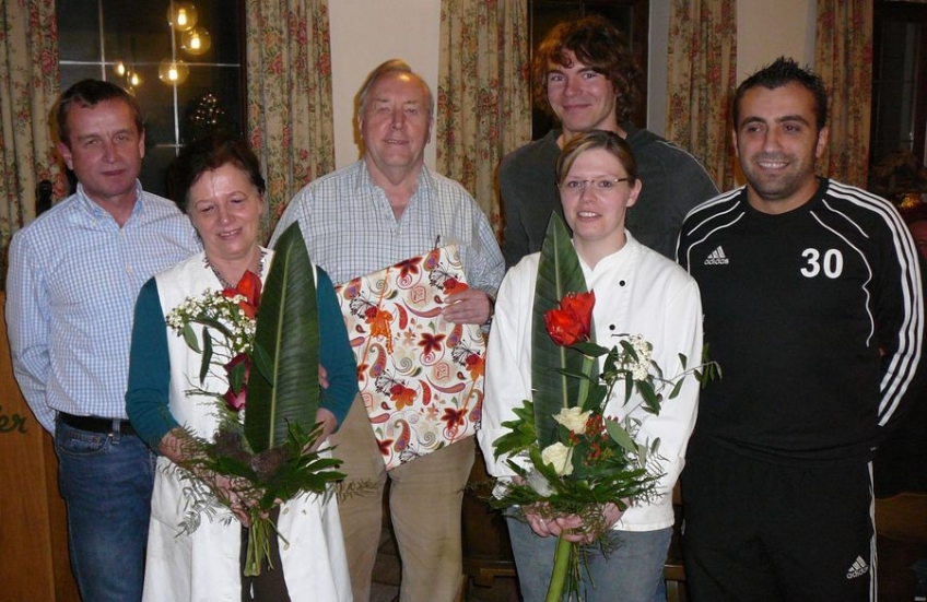 Zum Jahresabschluss 2010 wurden die Fußballer des TSV in den Hotel-Gasthof Dallmaier eingeladen. Zum schon traditionellen Empfang begrüßte Seniorchef Klaus Dallmaier die Aktiven der beiden Seniorenmannschaften mit ihren Frauen und Freundinnen, sowie die Vorstandschaft, Abteilungsleitung, Schiedsrichter und Trainer des TSV. Die stattliche Anzahl von Gästen wurde mit einem vorzüglichen Essen sowie Freibier (ausgeschenkt von Riedl Luck) bestens versorgt. Klaus Dallmaier ließ es sich nicht nehmen, eine kurze Rede an die Gäste zu halten, und hielt auch mit seinem sehnlichen Wunsch nicht hinter dem Berg: der TSV sollte baldmöglichst die Kreisklasse nach oben verlassen. Reiner Kappl bedankte sich für die Einladung und betonte noch einmal das Engagement der Familie Dallmaier, die nun bereits zum 21.Mal einen derartigen Empfang ausrichtete. Mit einem kleinen Präsent bedankte sich Reiner Kappl mit Unterstützung der Spielführer Matthias Schindlbeck und Arben Keka.