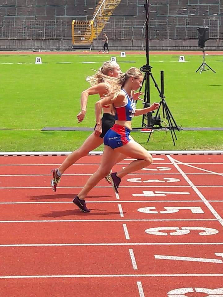 In Augsburg wurden die diesjährigen bayerischen Titelkämpfe der Aktiven und der Jugend ausgetragen. Aus den Ergoldsbacher Reihen hatte sich dazu eine kleine Anzahl von Athleten qualifiziert. Bei den Frauen startete Katrin Höfelsauer über die 100m. Mit Platz 24 im Gesamtergebnis konnte Sie sicherlich nicht an ihre bisher gezeigten Leistungen anknüpfen. Ebenfalls auf der Suche ihrer Form ist derzeit Regina Högl über die 5000 Meter. Sie erreichte am Ende Platz fünf. Bei den Männern war Stefan Högl über die 800 Meter am Start. Platz 14 war am Ende das Ergebnis. Felix Zimmermann ging über die 5000 Meter an den Start. Am Ende war es Platz acht für Ihn. Annika Masanetz war mit der 4 x 100 Meter Staffel bei der weiblichen Jugend U18 am Start. Mit einer starken Sprintleistung und noch verbesserungsfähigen Wechseln gewannen Sie souverän ihren Zeitlauf und erreichten am Ende Platz zwei in der bayerischen Meisterschaft. Mit der Zeit von 50,08 Sekunden qualifizierte sich das neu zusammengestellte Quartett aus den Vereinen (09 Landshut/DJK Altdorf/TSV Ergoldsbach) auf Anhieb für die Teilnahme an den deutschen Jugendmeisterschaften am 26. Juli in Ulm.