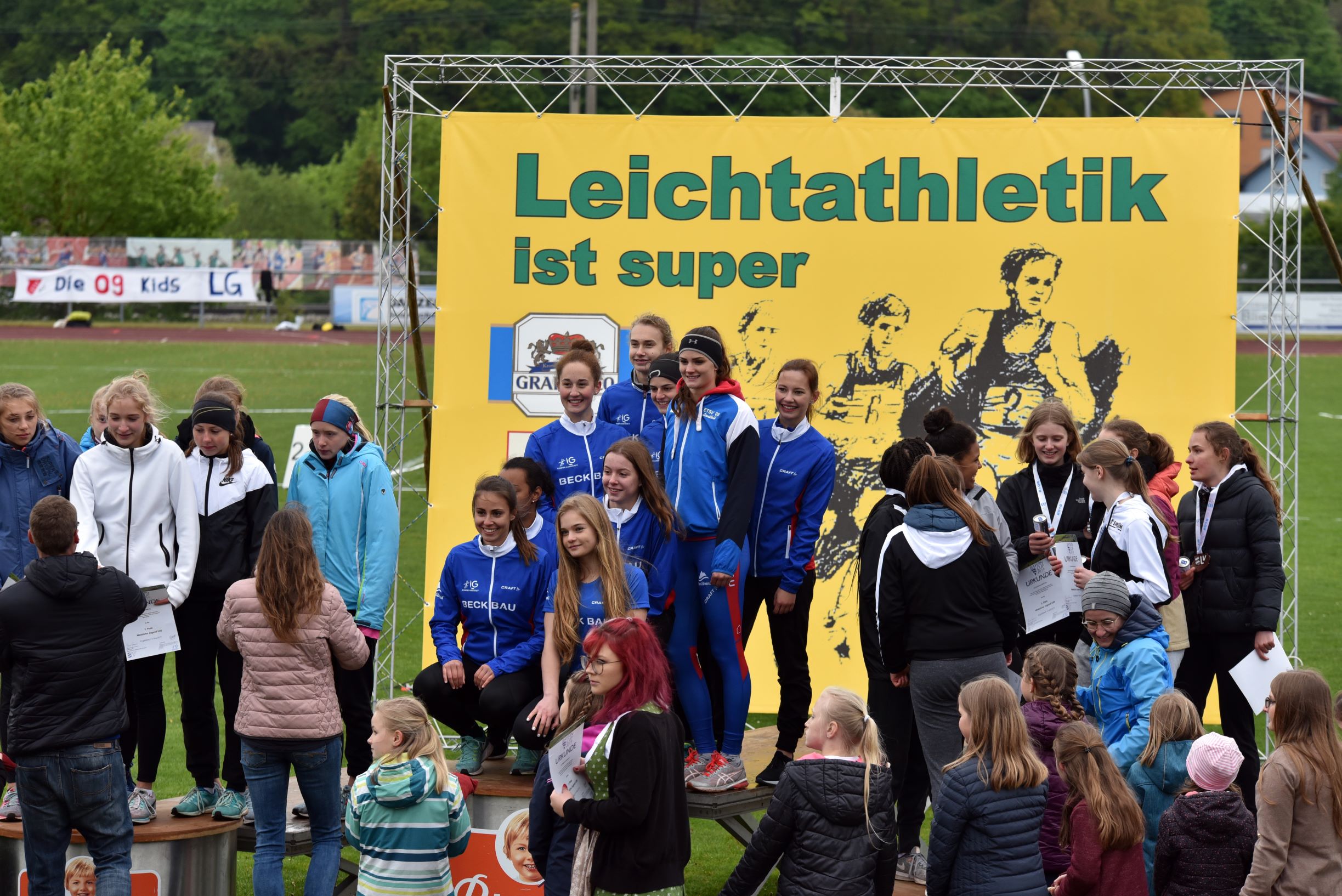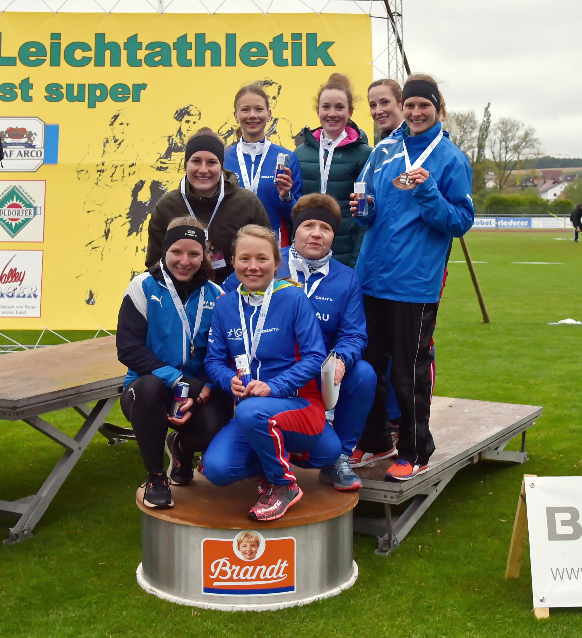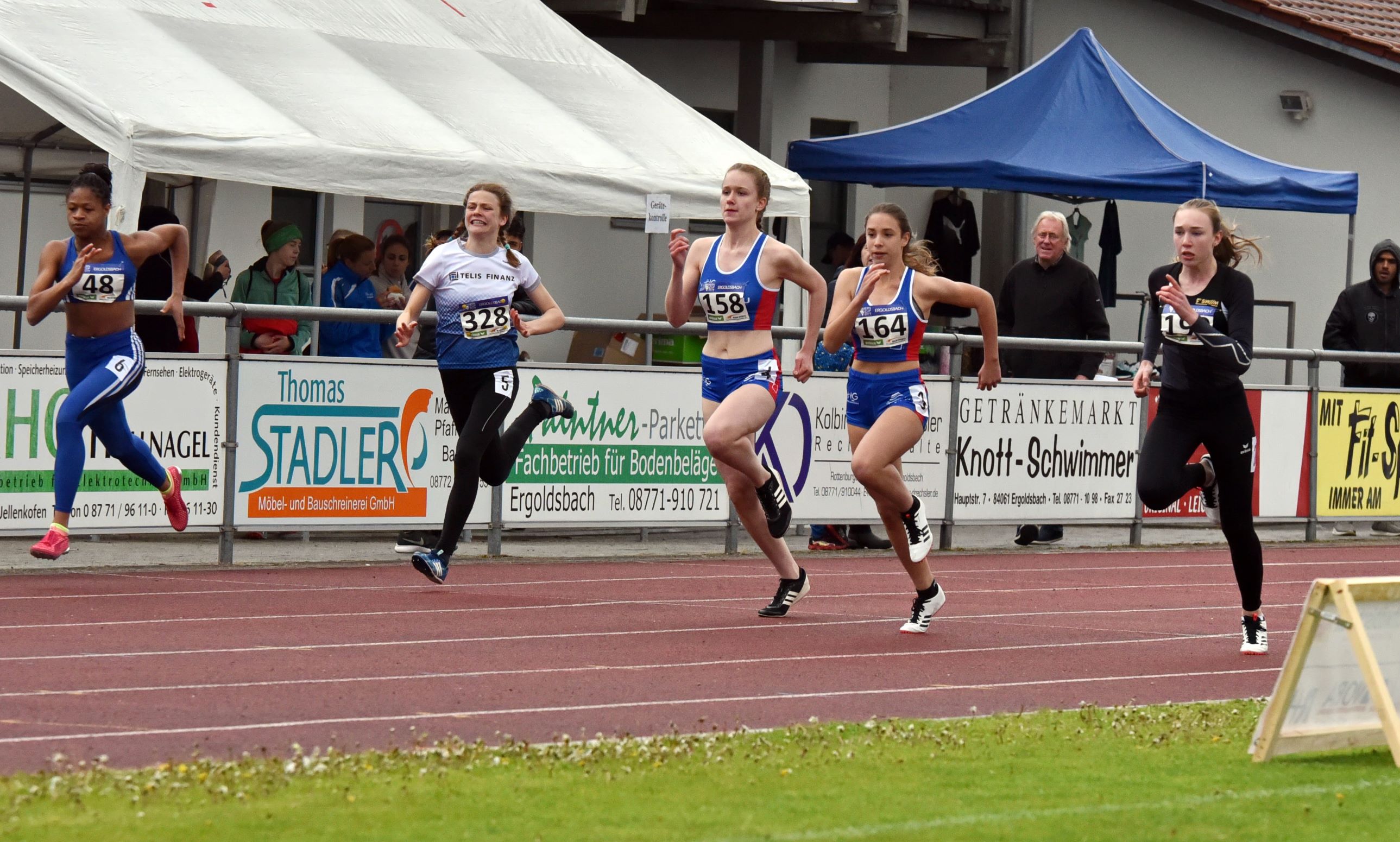 Bei den Frauen waren neben den Landshuterinnen noch 5 Ergoldsbacherinnen in den LG Mannschaften vertreten. Für die zweite Mannschaft brachte Lena Hutzenthaler den Staffelstab erfolgreich ins Ziel. In der ersten Mannschaft konnte Regina Högl die volle Punktzahl im 1500 m Lauf holen. Natalie Ott wurde im Weitsprung trotz schwieriger Windverhältnisse zweite. Pia Reindl lief nach Ihrem Hochsprung noch mit Katrin Höfelsauer in der 4x100 m Staffel, die ebenfalls den zweiten Rang erreichte. Die gesamte Mannschaftsleistung reichte überraschend für die Bronzemedaille.