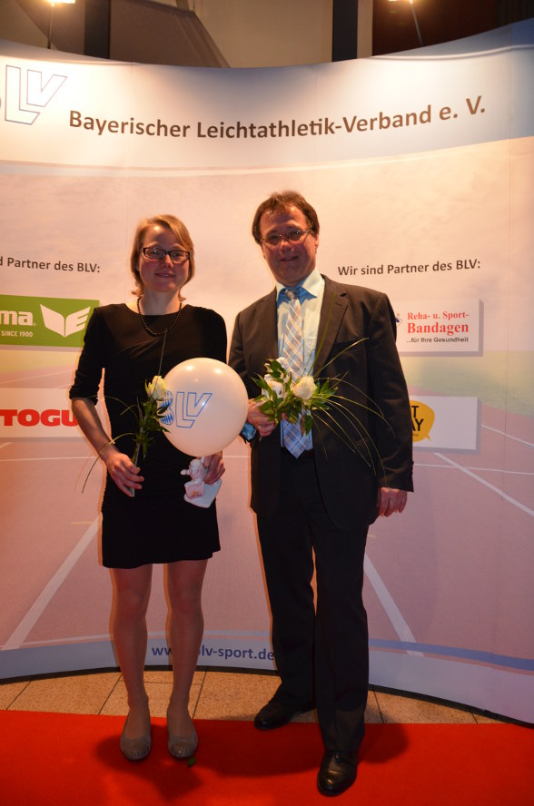 Nach Barbing bei Regensburg hatte der Bayerische Leichtathletikverband zur Verleihung des Bayernstar 2015 geladen. Vom TSV Ergoldsbach waren Regina Högl mit ihrem Trainer Erich Woidy geladen. Regina wurde für ihre zwei Deutschen Meistertitel und die deutsche Vizemeisterschaft in der U23 geehrt.