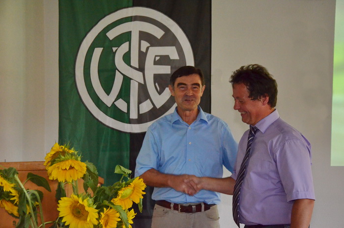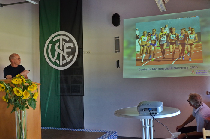 Danach ehrte Alfons Gemelch im Namen des TSV Ergoldsbach Regina Högl und beglückwünschte sie zu ihren Deutschen Meistertiteln bei den Juniorinnen im 5.000 m-Lauf und im Halbmarathon, sowie dem Vizemeistertitel über 10.000 m. Außerdem ehrte er ihren Trainer Erich Woidy, ohne den diese Titel nicht möglich gewesen wären.