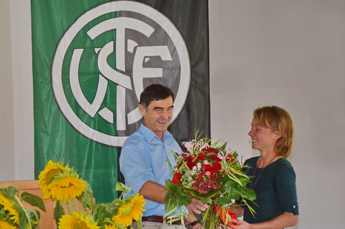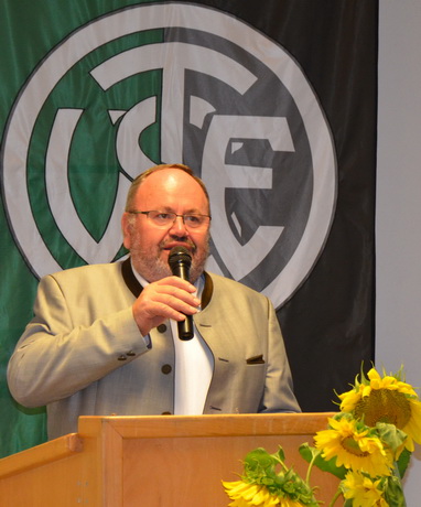 Nach einer kurzen Begrüßung durch den 1. Vorstand Alfons Gmelch hielt Dr. Ludwig Woidy eine Laudatio auf Regina, in der er unterstützt durch einige Bilder auf ihren bisherigen sportlichen Werdegang und ihre Erfolge einging. Er hob auch ihre große Motiviation und den unbändigen Siegeswillen hervor, der sie immer wieder antreibt, auch wenn es mal nicht so läuft. Besonders erwähnte er auch die gute Zusammenarbeit mit ihrem Trainer Erich Woidy, der sehr viel Aufwand und Herzblut in ihre Betreuung investiert.