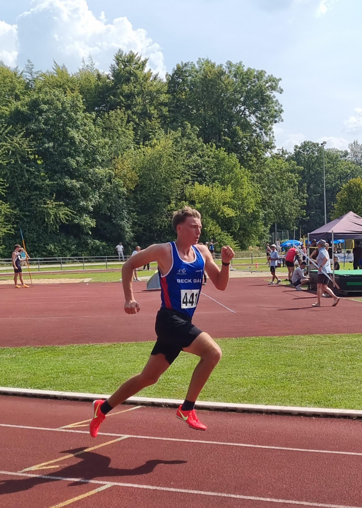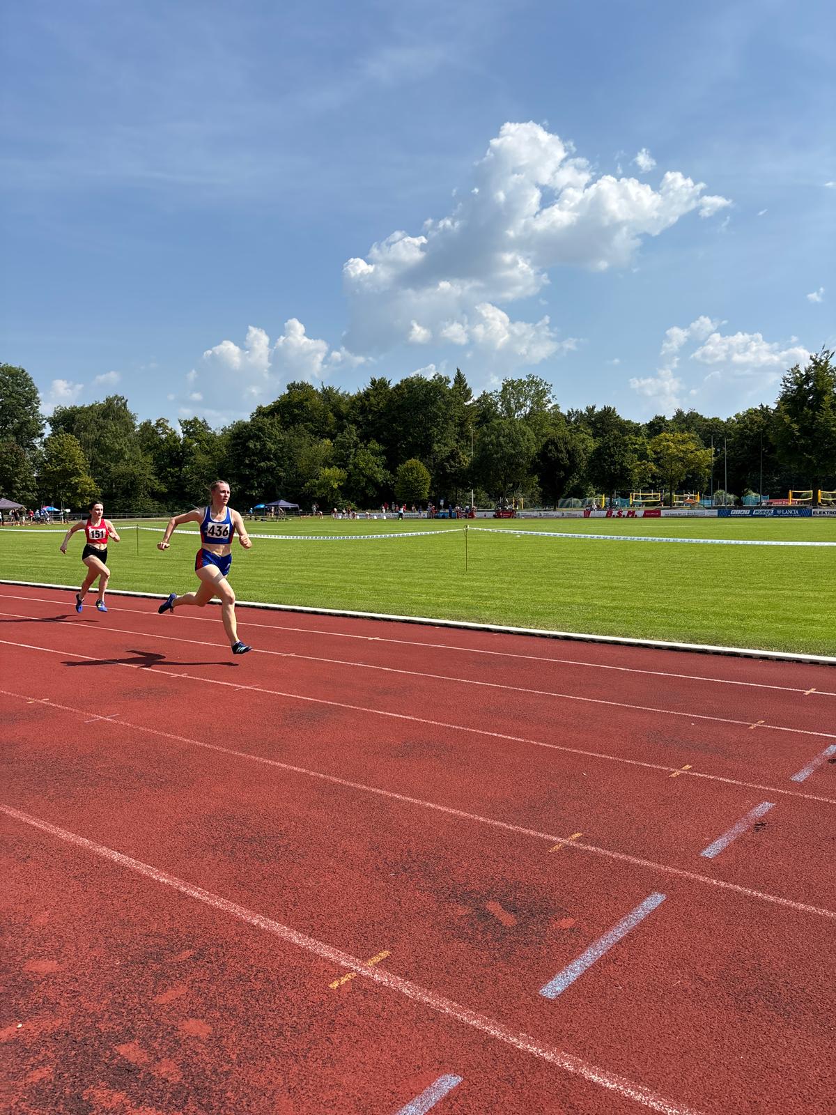Zum Saisonabschluss ging es traditionell zu den Volksfestwettkämpfen nach Dachau. Bei sommerlichen Temperaturen und bester Stimmung konnte sich Marie Mieslinger mit Zeiten von 13,83 Sekunden über 100m und 28,93 Sekunden über 200m freuen. Seinen ersten Wettkampf überhaupt absolvierte Raphael Schönberger. Da seine Altersklasse die U20 in Dachau nicht angeboten wurde, musste er gleich in der Männerklasse an den Start gehen. Mit viel Einsatz und Kampfgeist erreichte er über die 100m eine passable Zeit von 12,92 Sekunden und über 200m eine Zeit von 26,53 Sekunden. Im Anschluss ging es zum Ausklang für die Gruppe noch ins Dachauer Volksfest.