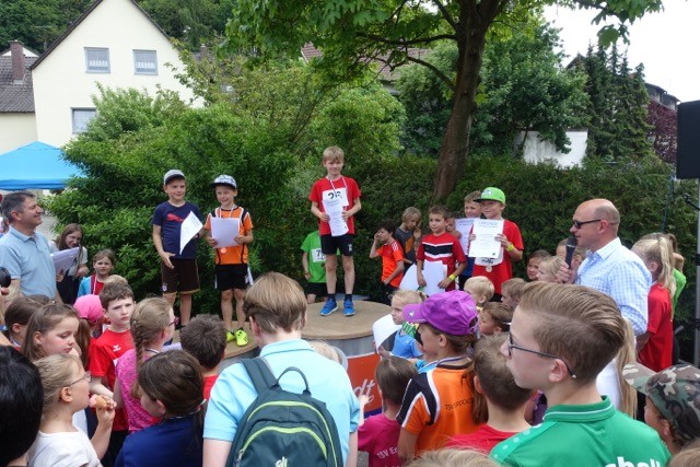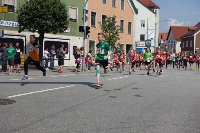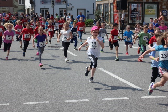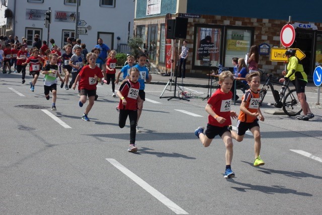 Pünktlich um 11:00 Uhr wurde der 500m-Baminilauf durch unseren 1. Bürgermeister Ludwig Robold angeschossen. Mit großem Ehrgeiz und voller Freude liefen die Allerkleinsten und bekamen zur Belohnung im Ziel gleich eine Medaille überreicht.