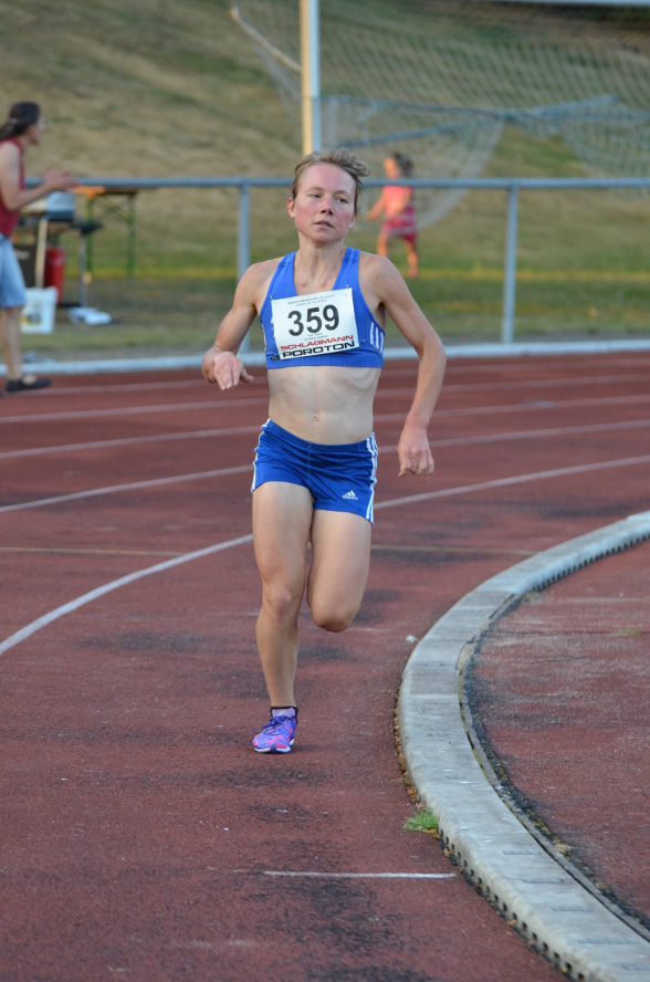 Regina Högl erreichte in einem nie gefährdeteten Start-Ziel-Sieg über die 3000 Meter und damit den bayer. Meistertitel bei den Juniorinnen.