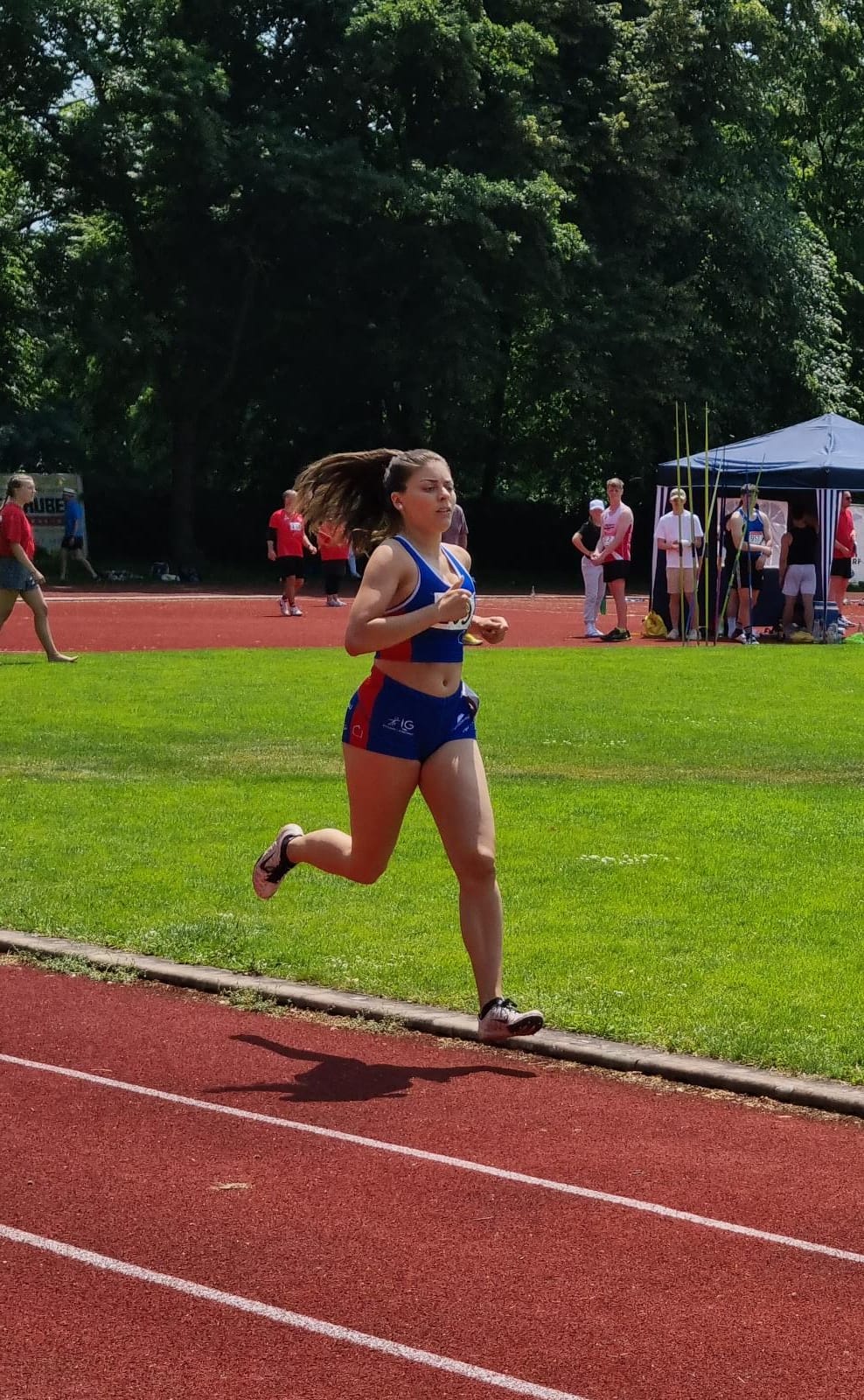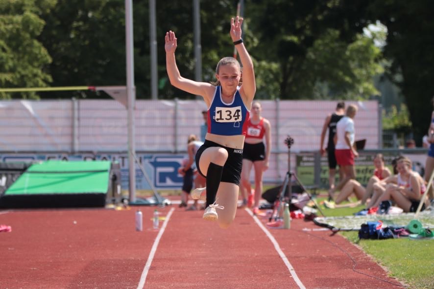 Die einzige ergoldsbacher U18-Starterin war Sophia Sachsenhauser, die in 14,44 Sekunden über die 100m auf Platz 6 lief. In der Mittagshitze erkämpfte sie sich noch den fünften Platz über 800m in einer Zeit von 2:42,24 Minuten.