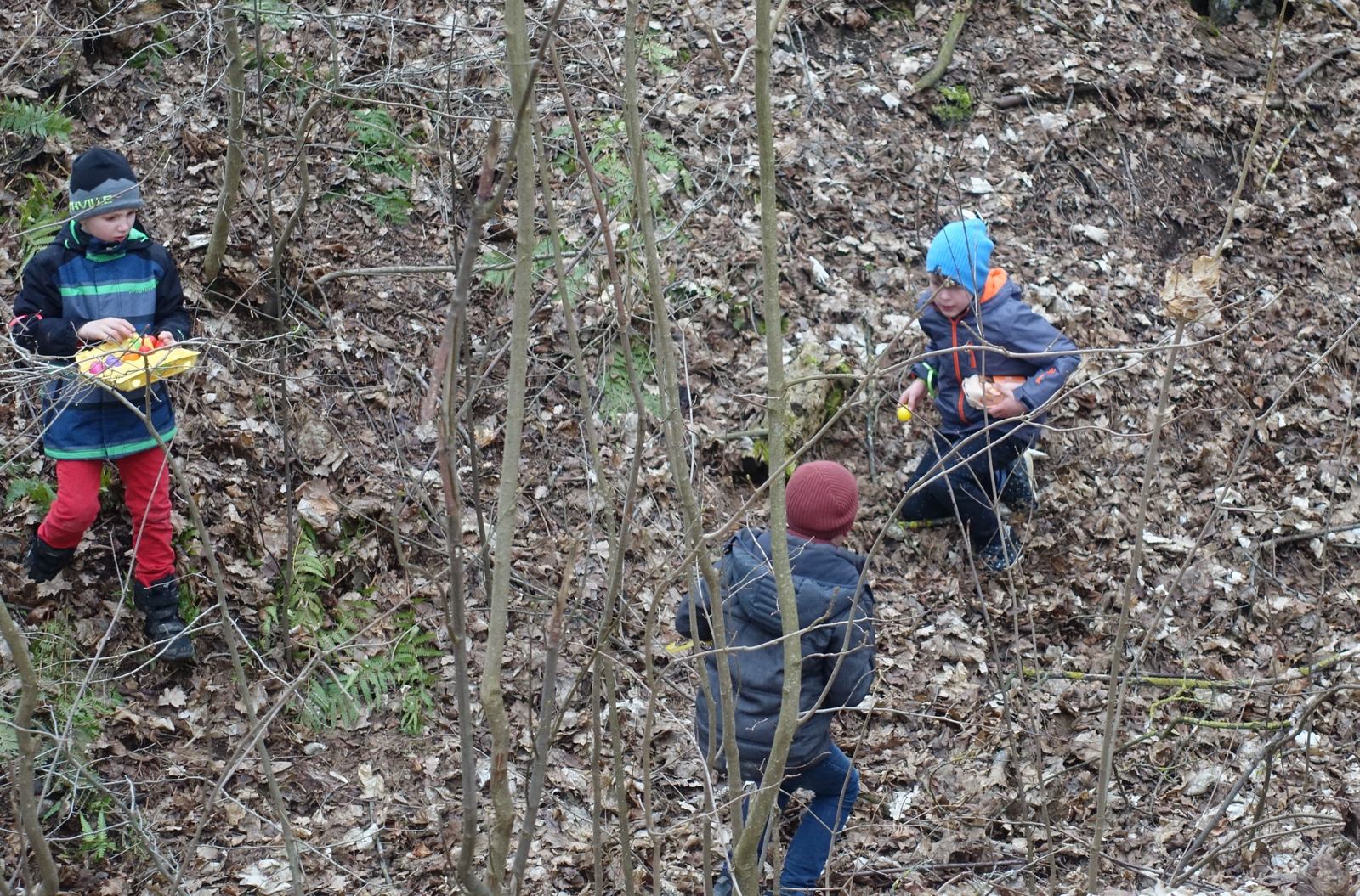 Auch wenn das Wetter kalt und windig war, hatten alle Kinder, die Eltern und das Organisationsteam viel Spaß beim Wandern. Am Ende versteckte der Osterhase für jedes Kind eine Ostertüte voll von Naschsachen am Sportplatz.