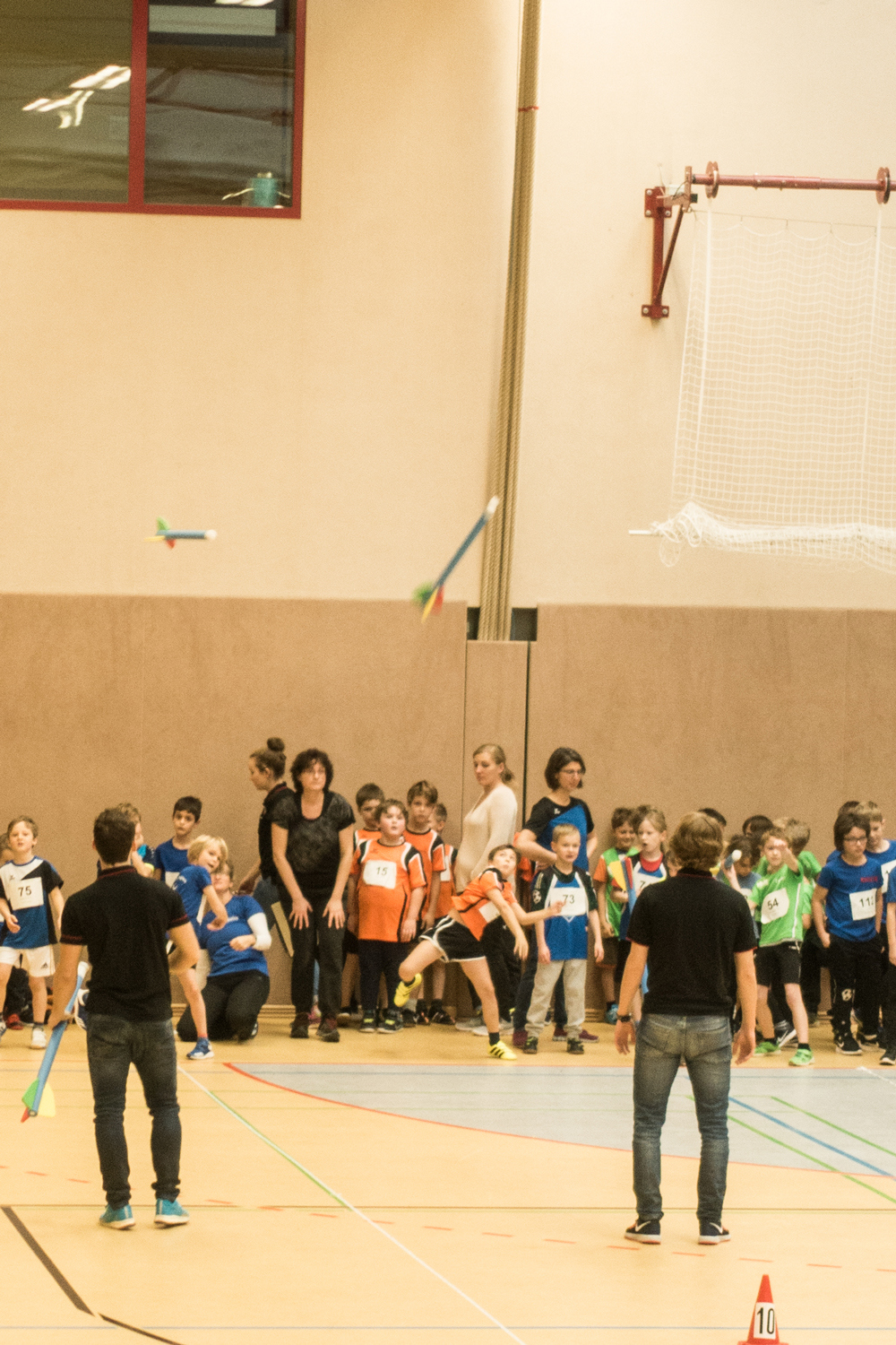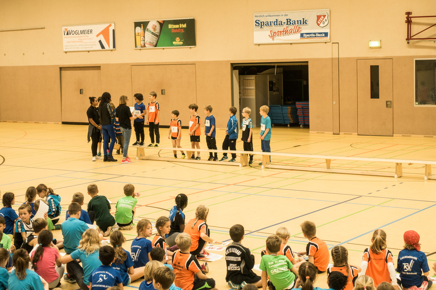 30m Hindernislauf, Slalomsprint aus der Bauchlage, Soft-Speerwurf und Standweitsprung waren die vier Disziplinen der Schülertriade in der ETSV 09 Halle Landshut.